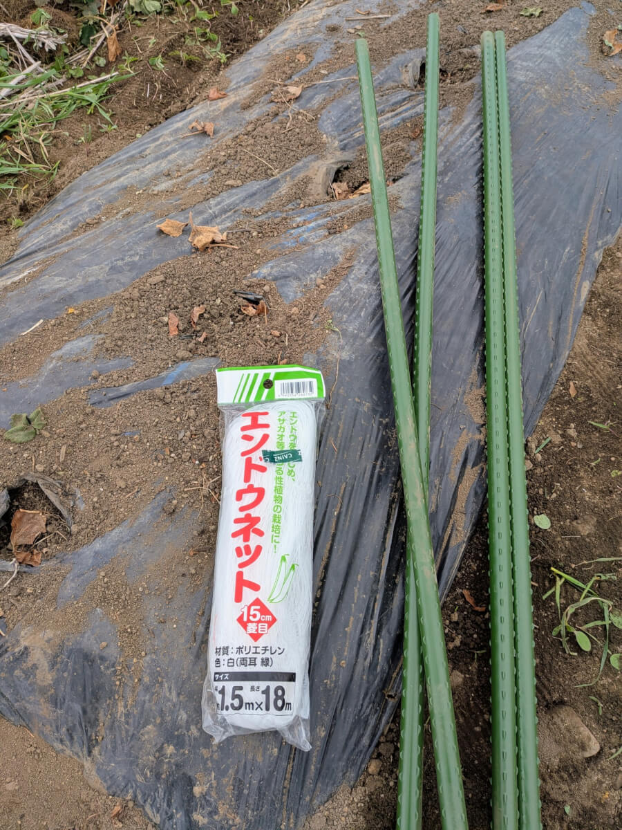 まずは園芸店でネットと支柱を購入。