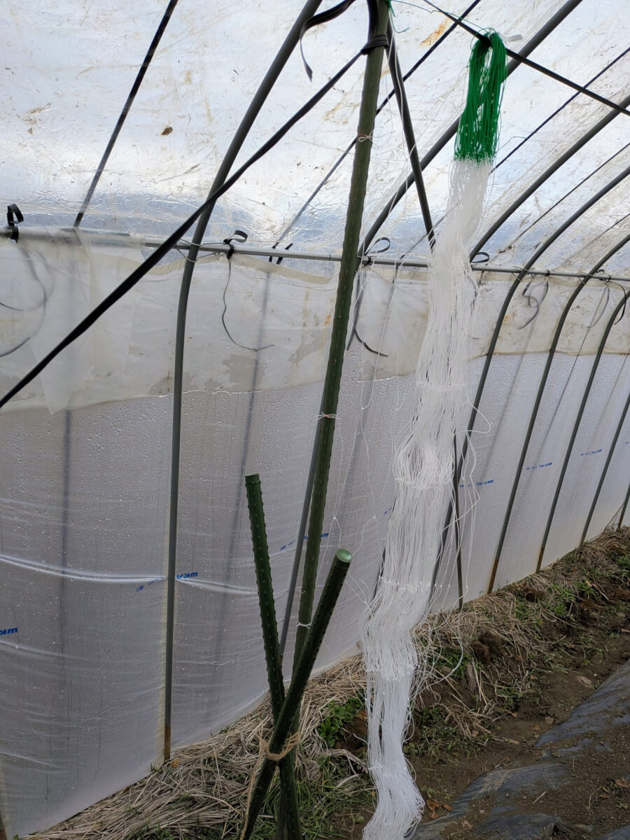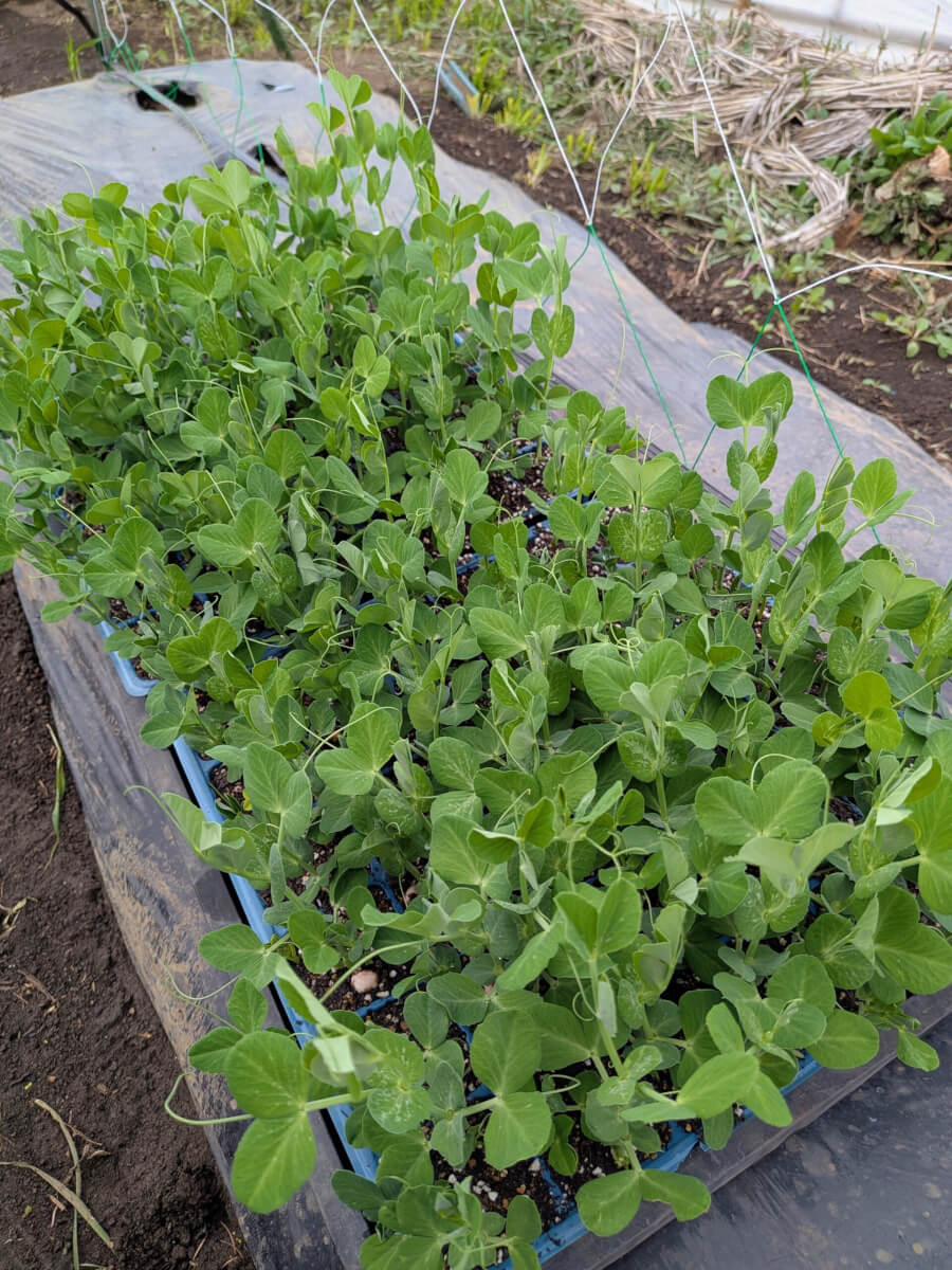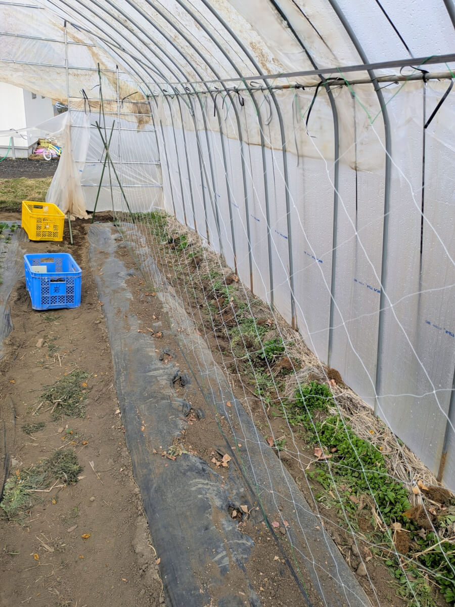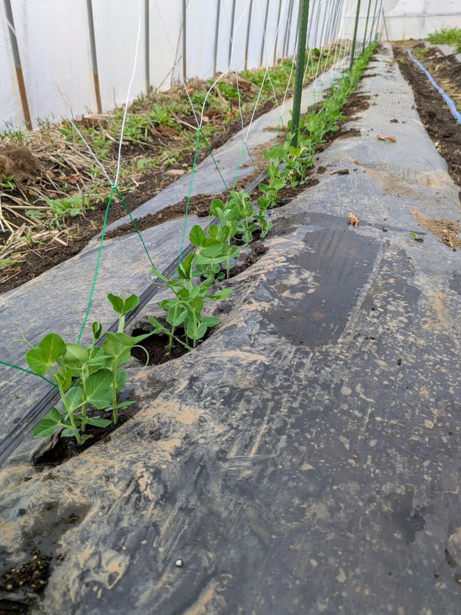 スナップえんどうは寒さに弱いということなので、昨年新たに建てたビニールハウスの中で育ててみます。